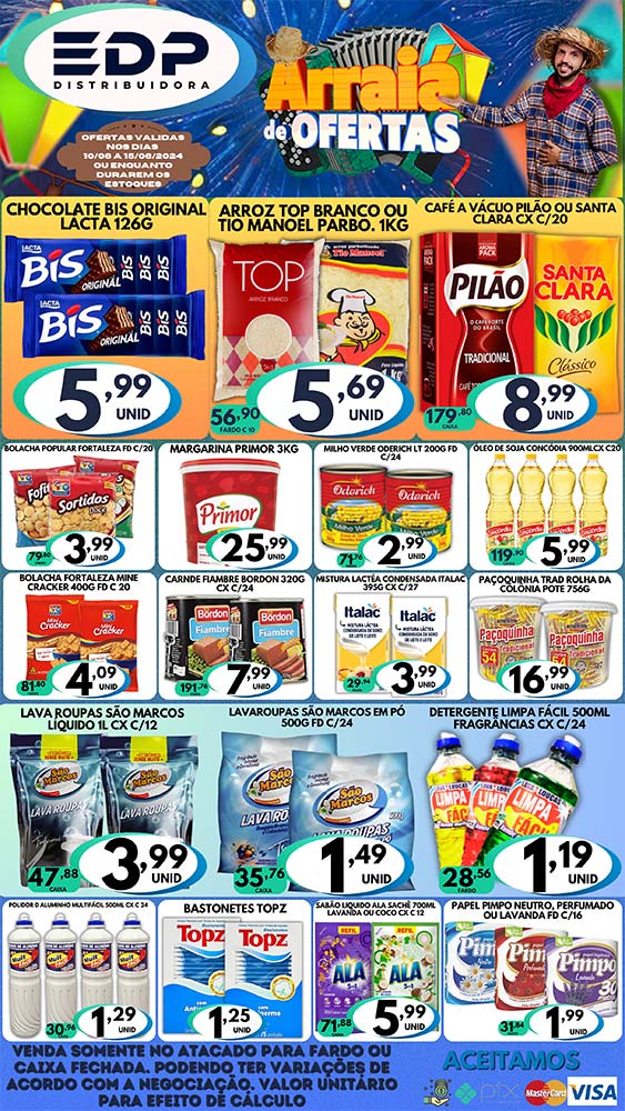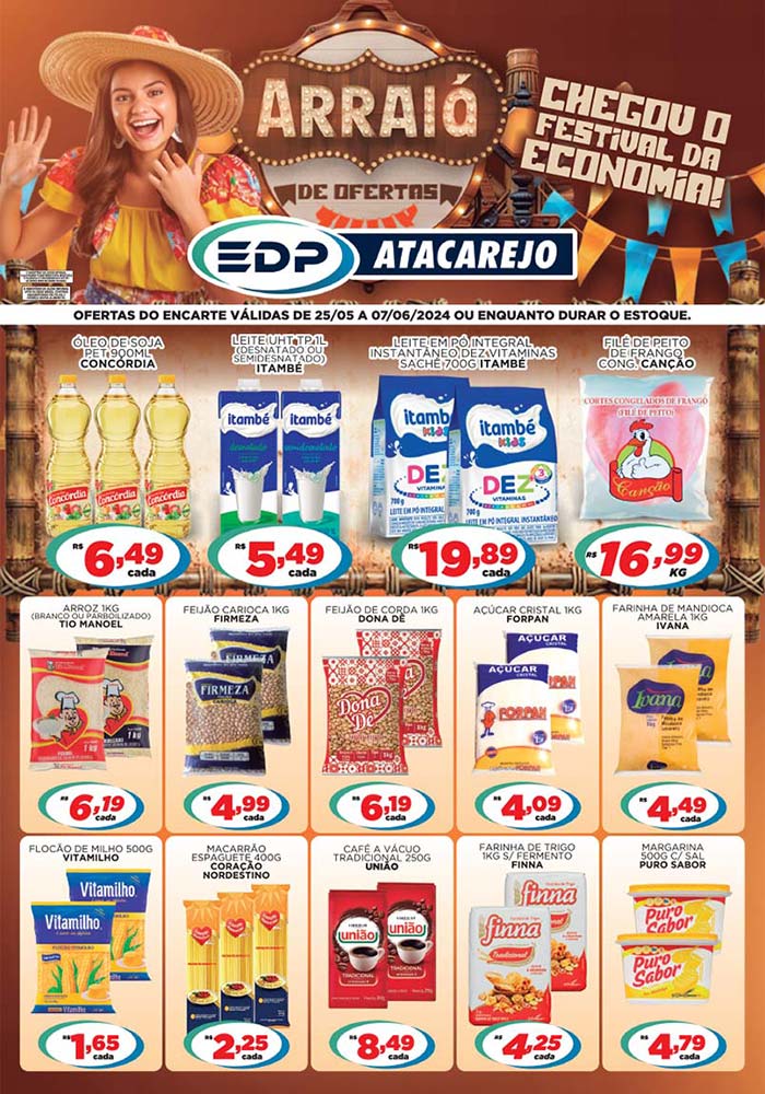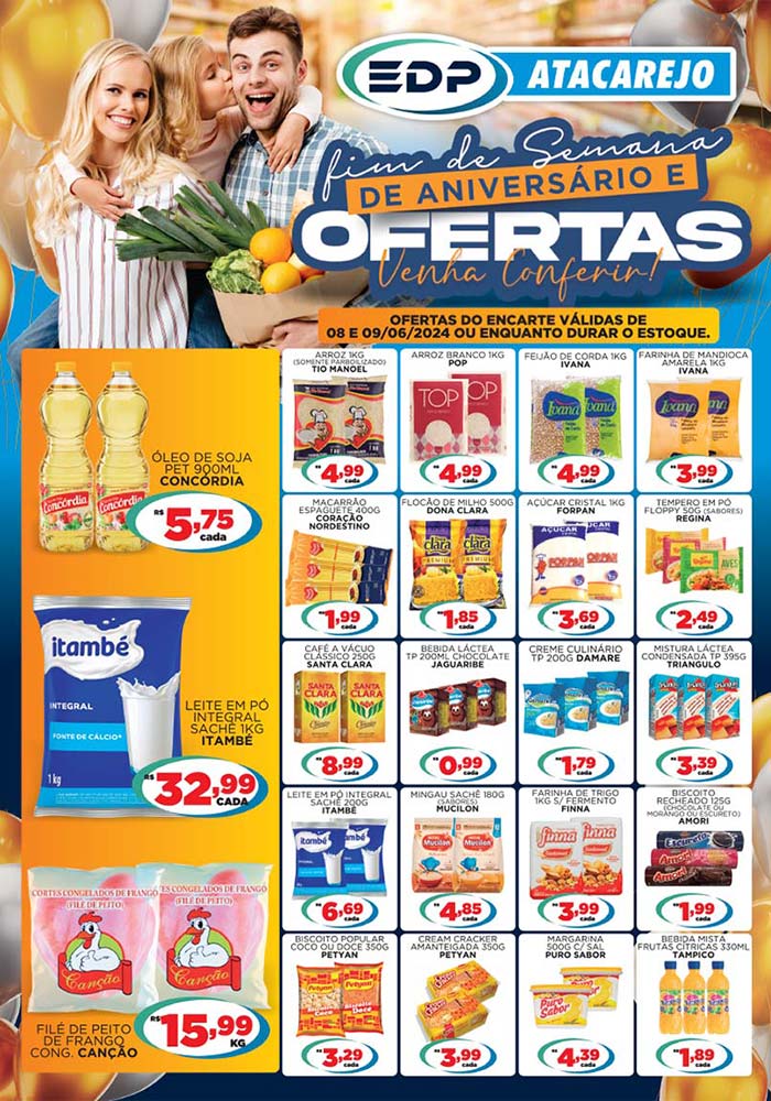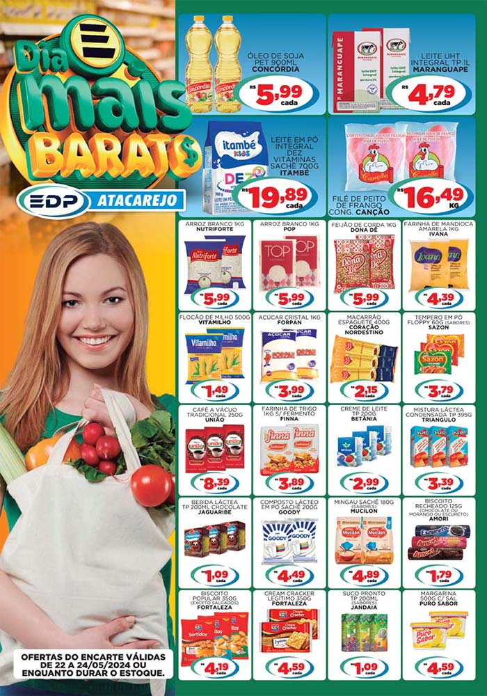 Leite em pó Itambé Leite UHT Betânia Creme de leite (marcas) Leite condensado (marcas) Biscoito popular Fortaleza Macarrão instantâneo (Nissin) Carne fiambre (Bordon, Oderich) Enlatado (milho, ervilha e dueto) Margarina Puro Sabor Água mineral Iluminagua Refrigerante Indaiá 2L