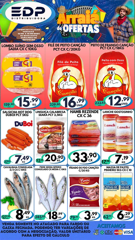 Linguiça churrasco Nobre Linguiça calabresa Seara Mortadela Confiança Sobrepaleta suína Salsicha Rezende Steak de frango Carcaça de frango Filé de peito de frango Peito de frango Lombinho bovino
